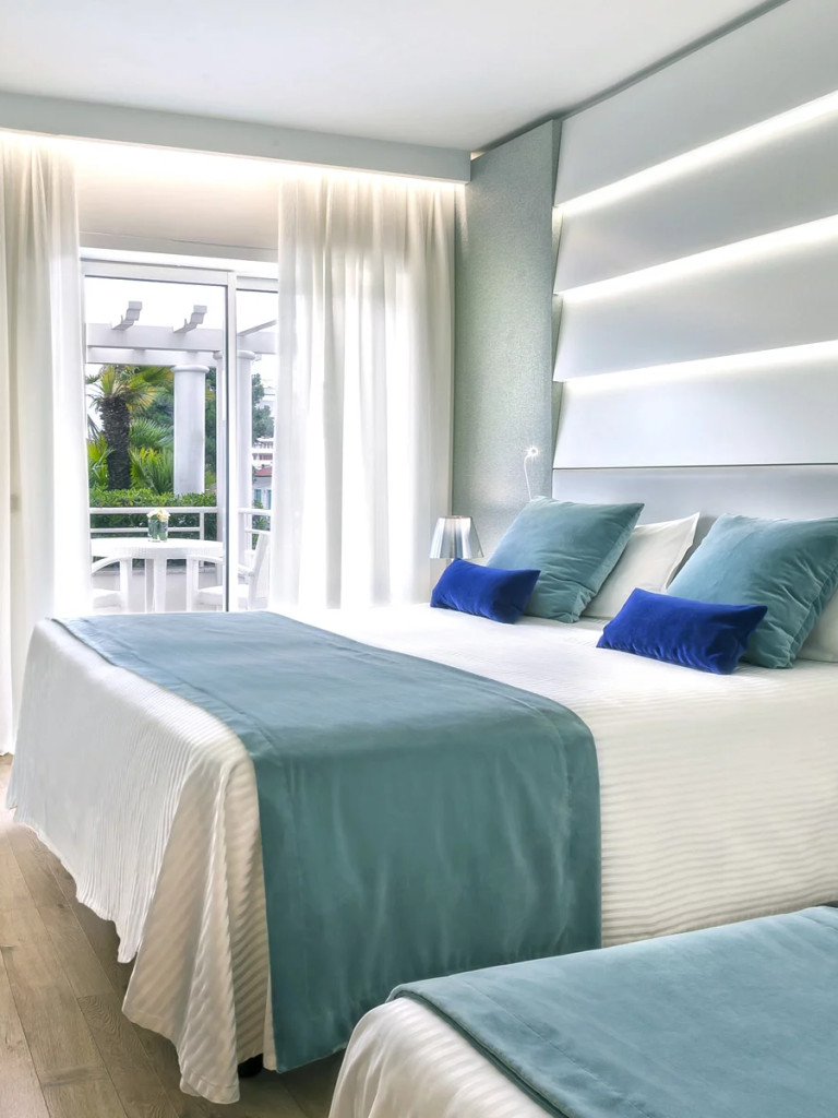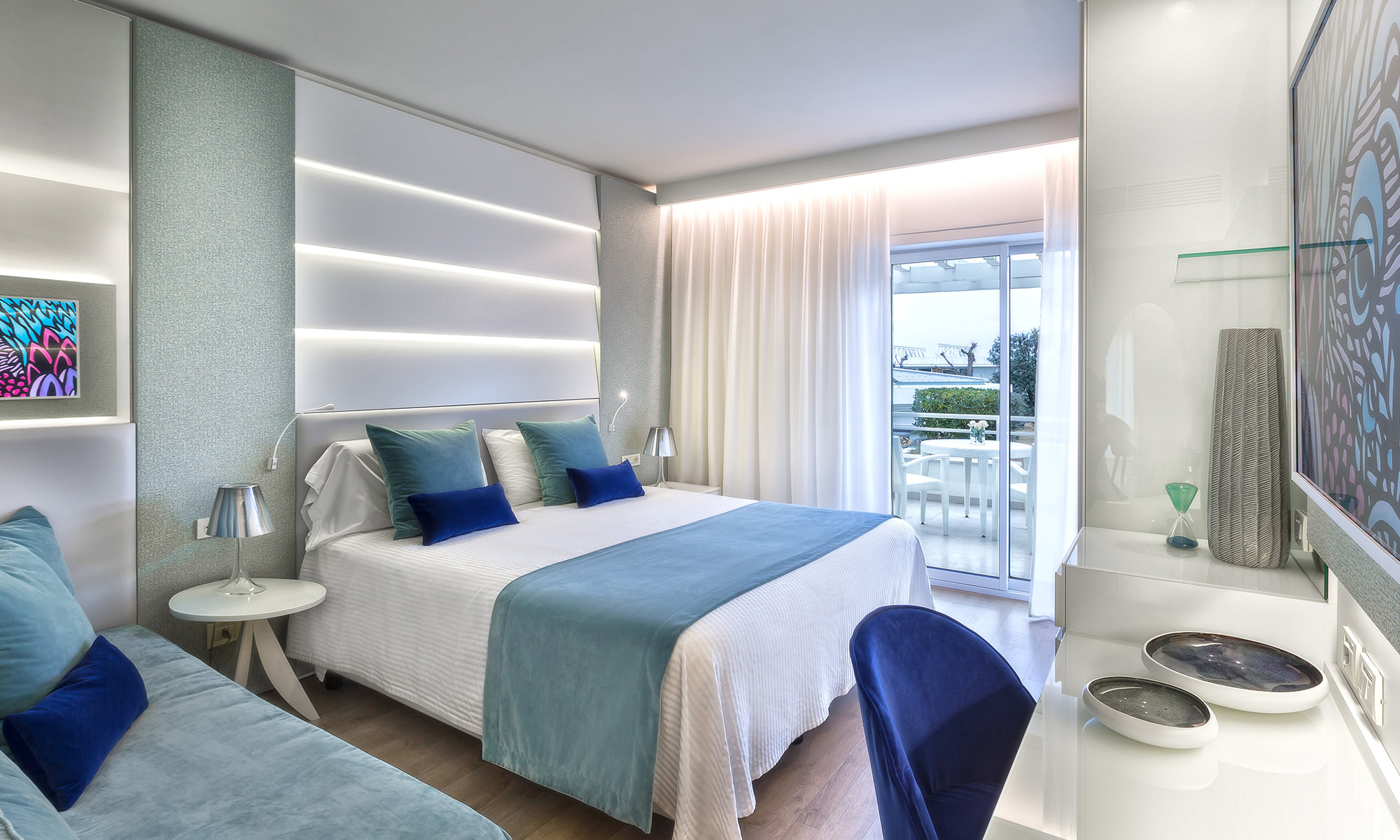 Le grandi vetrate sono piene dell’azzurro del cielo e del blu del mare, gli ambienti accoglienti e luminosi fondono, in perfetta armonia, stile mediterraneo e un’ospitalità elegante e accurata. È nel cuore di Riccione e bastano pochi passi per raggiungere Viale Ceccarini e le sue boutique alla moda. Offre 66 nuove camere vista mare, ciascuna con posto auto in garage.